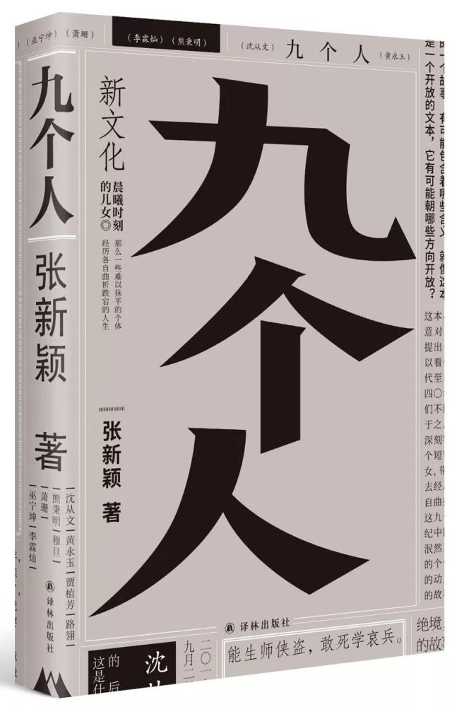 继《沈从文的后半生》《沈从文的前半生》之后,《九个人》是复旦大学教授张新颖又一部人物传记力作。这本小书讲述了沈从文、黄永玉、贾植芳、路翎、穆旦、萧珊、巫宁坤、李霖灿、熊秉明这九个人相异而相通的命运。