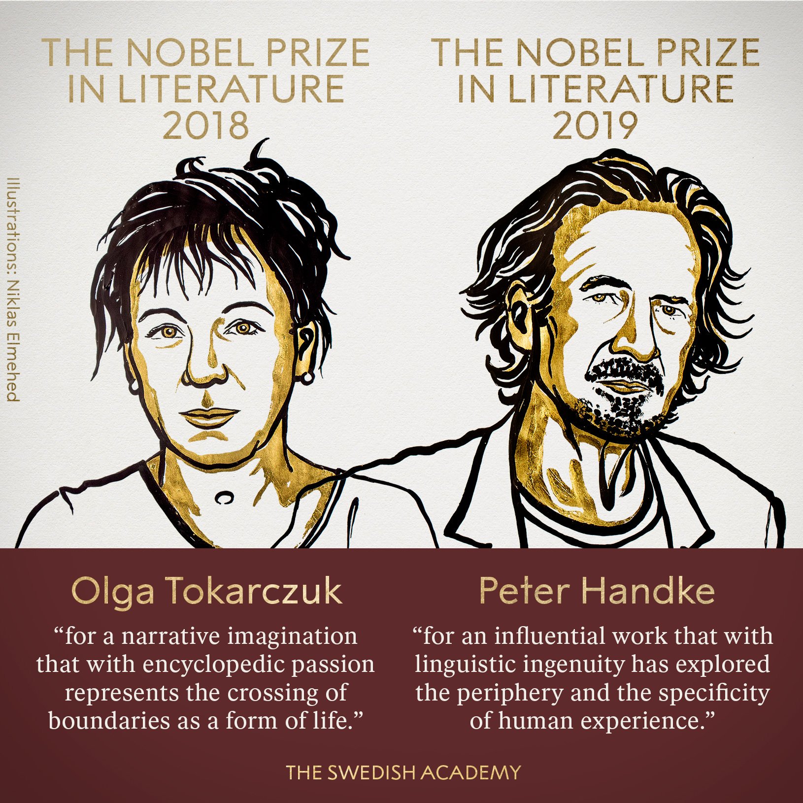 当地时间10月10日,瑞典文学院宣布,将2018年诺贝尔文学奖授予奥尔加·托卡尔丘克(Olga Tokarczuk,又译作奥尔嘉·朵卡萩),将2019年诺贝尔文学奖授予彼得·汉德克(Peter Handke)。