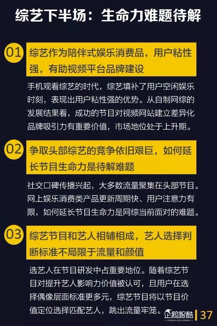 随着综艺节目对提升艺人影响力价值被认可,且用户在选择偶像层面标准更多元,综艺节目将以节目价值定位选择匹配艺人,跳出流量牢笼。
