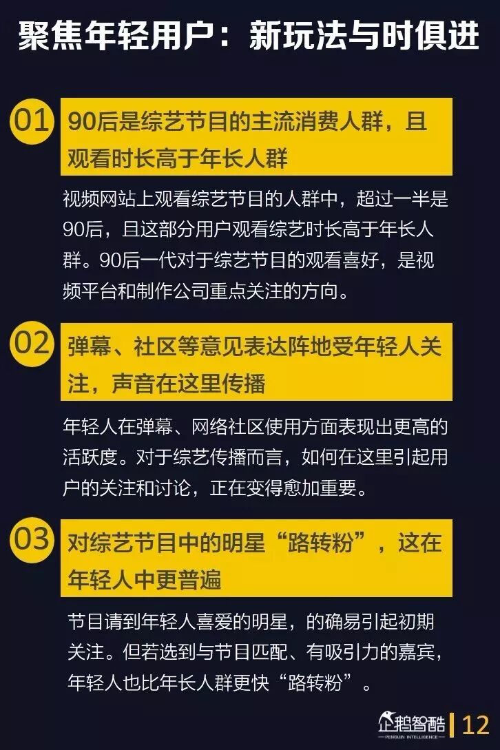 90后是综艺节目的主流消费人群,且观看时长高于年长人群;弹幕、社区等意见表达阵地受年轻人关注,声音在这里传播;对综艺节目中的明星“路转粉”,这在年轻人中更普遍。