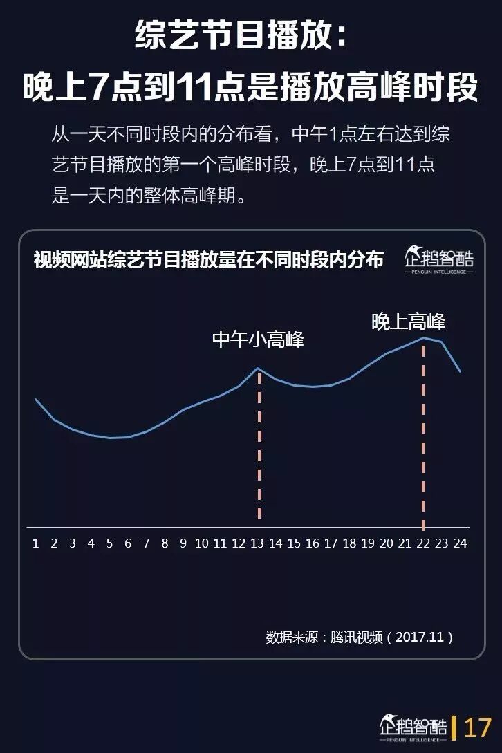 4、 综艺节目播放:晚上7点到11点是播放高峰时段