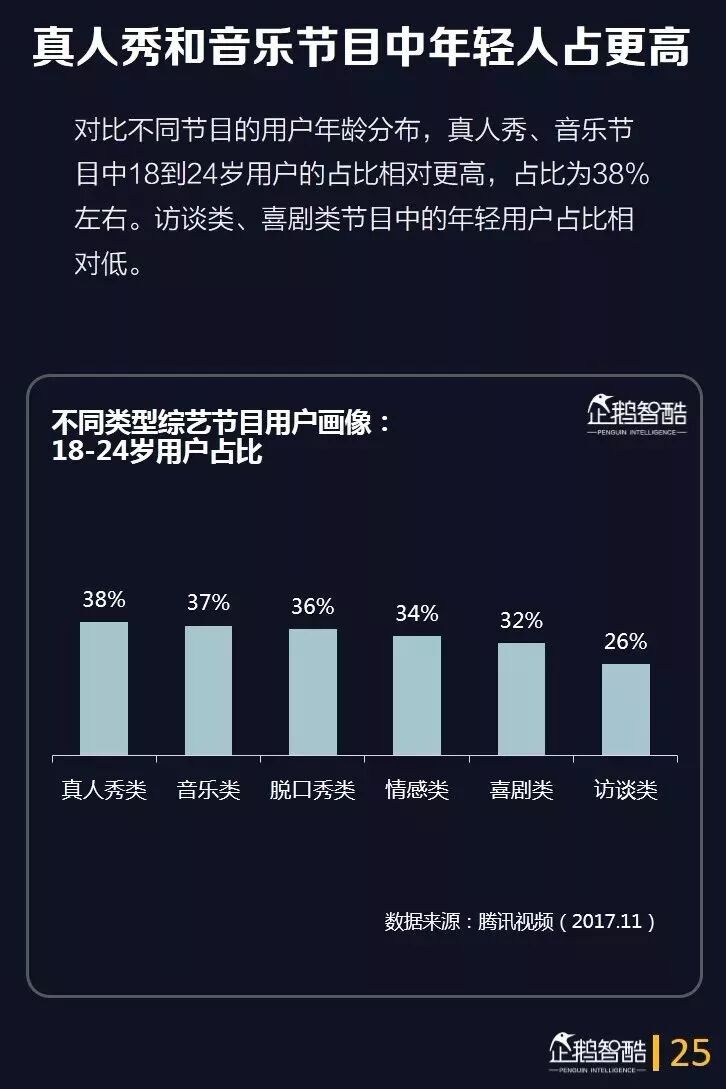 1、综艺节目用户中90后占比过半,年轻用户为主流