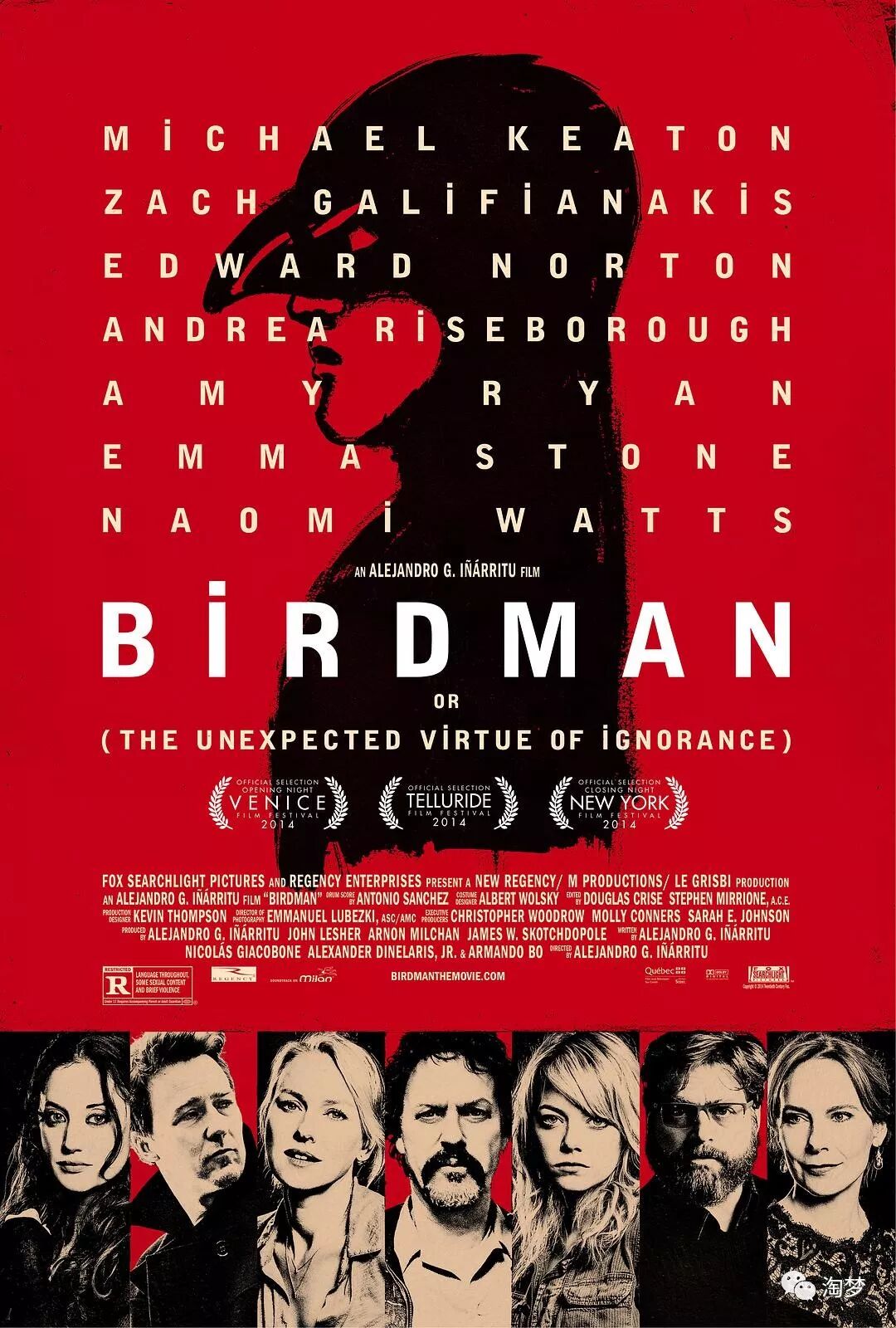 《鸟人》是墨西哥导演亚利桑德罗·冈萨雷斯·伊纳里图执导的一部喜剧片,讲述一个过气的超级英雄演员,企图借百老汇咸鱼翻身的故事。该片获得了第87届奥斯卡最佳影片奖和最佳导演奖。