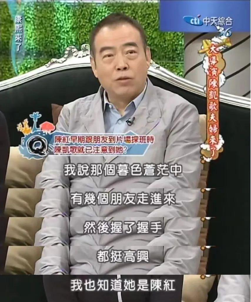 陈凯歌说:“那一刻,她还是当成了20年前的陈凯歌,我也觉得,她是我20年前认识的陈红。”