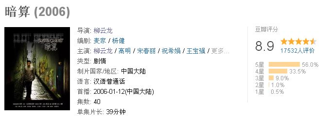 在口碑上,《暗算》在豆瓣拿到8.9的高分。