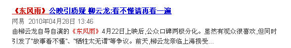 但也有例外,比如2010年他执导并主演的电影《东风雨》。