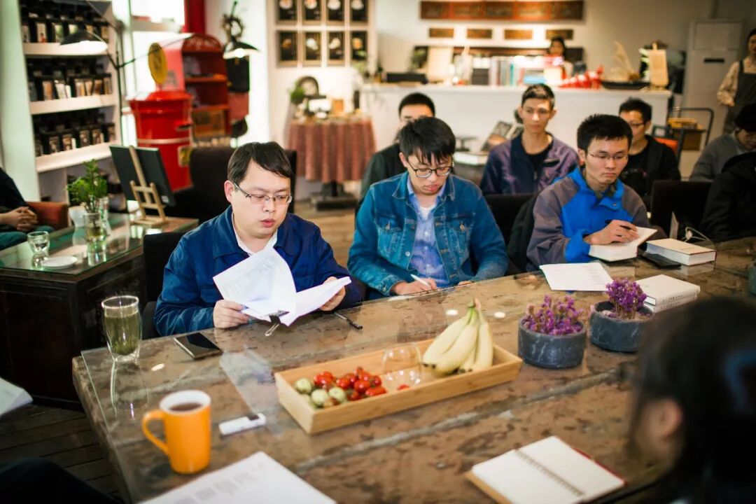 很难得的,因为在先锋书店的缘故,在别人难得一见的情况下,北岛老师却来到先锋老钱工作室,给先锋的员工上了一堂诗歌课,同行的还有诗人赵野,以及低调的躲在后面的作家阿乙,每个人带上自己的诗作,在北岛老师面前读出来,等待批评,想来是需要很大勇气的,敢于显示自己的才华,也敢于暴露自己的稚嫩,然而这却是一种求上进的表现和实操,面对难得的机会,羞涩几乎是做作的。