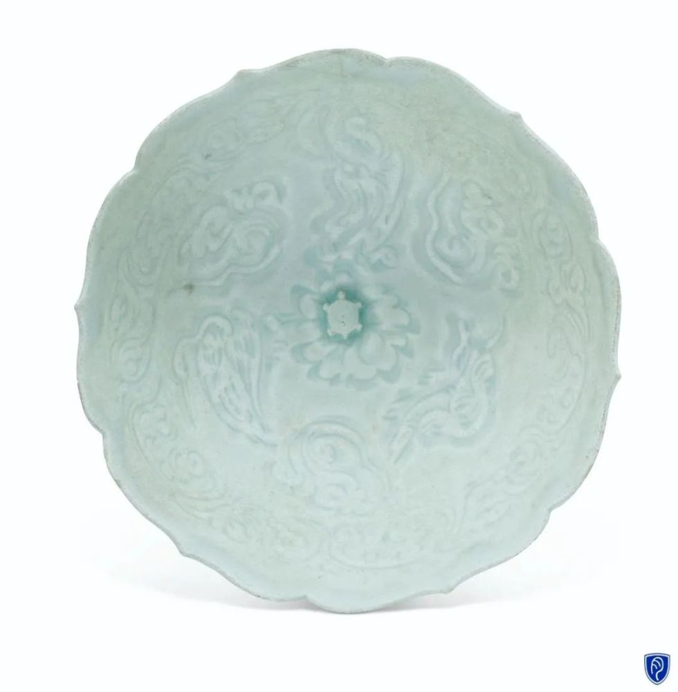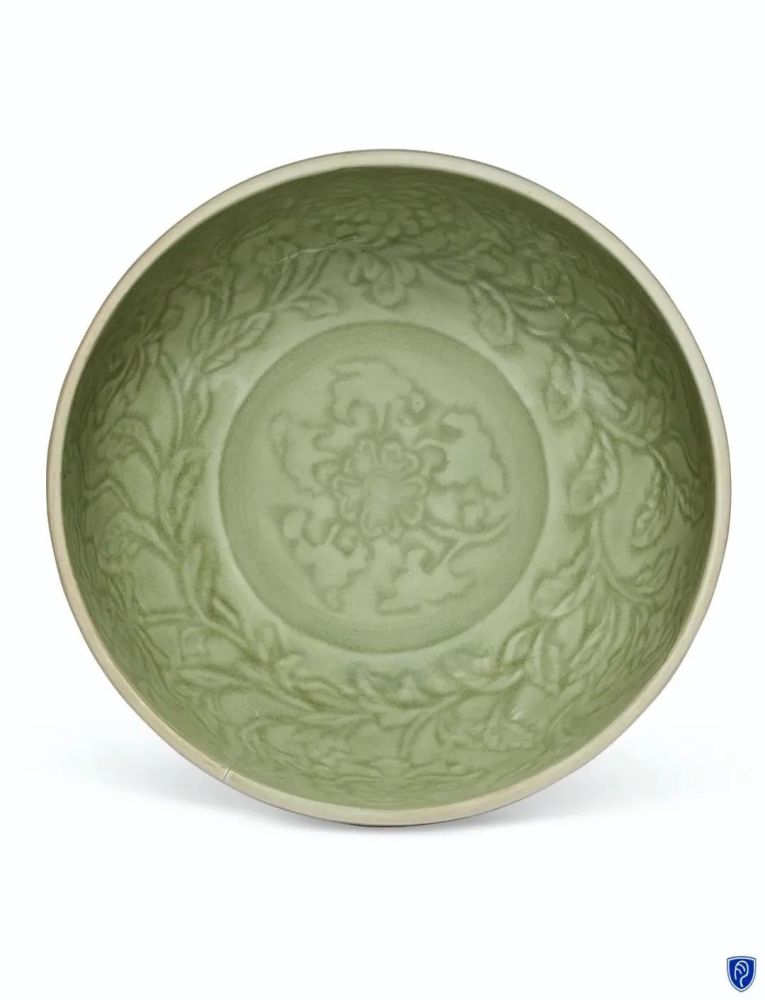 Lot895 明初十五世纪 龙泉窑青釉刻花卉纹碗