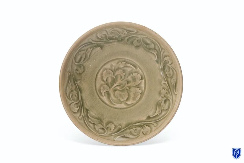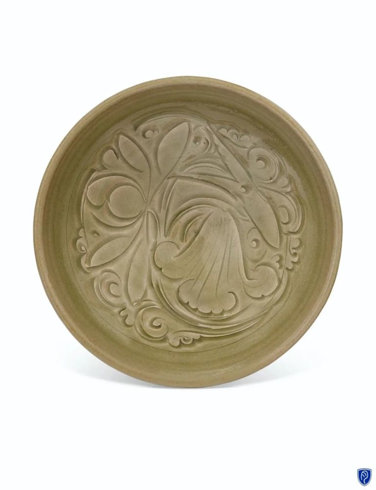 Lot888 北宋/金 耀州青釉卷草纹盘