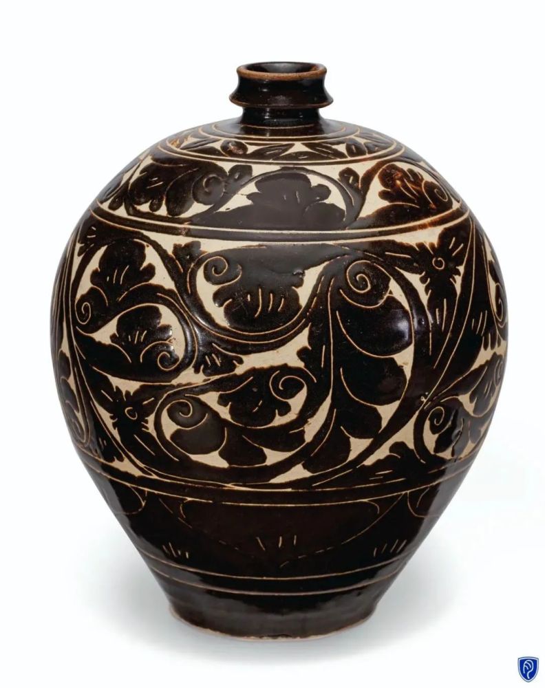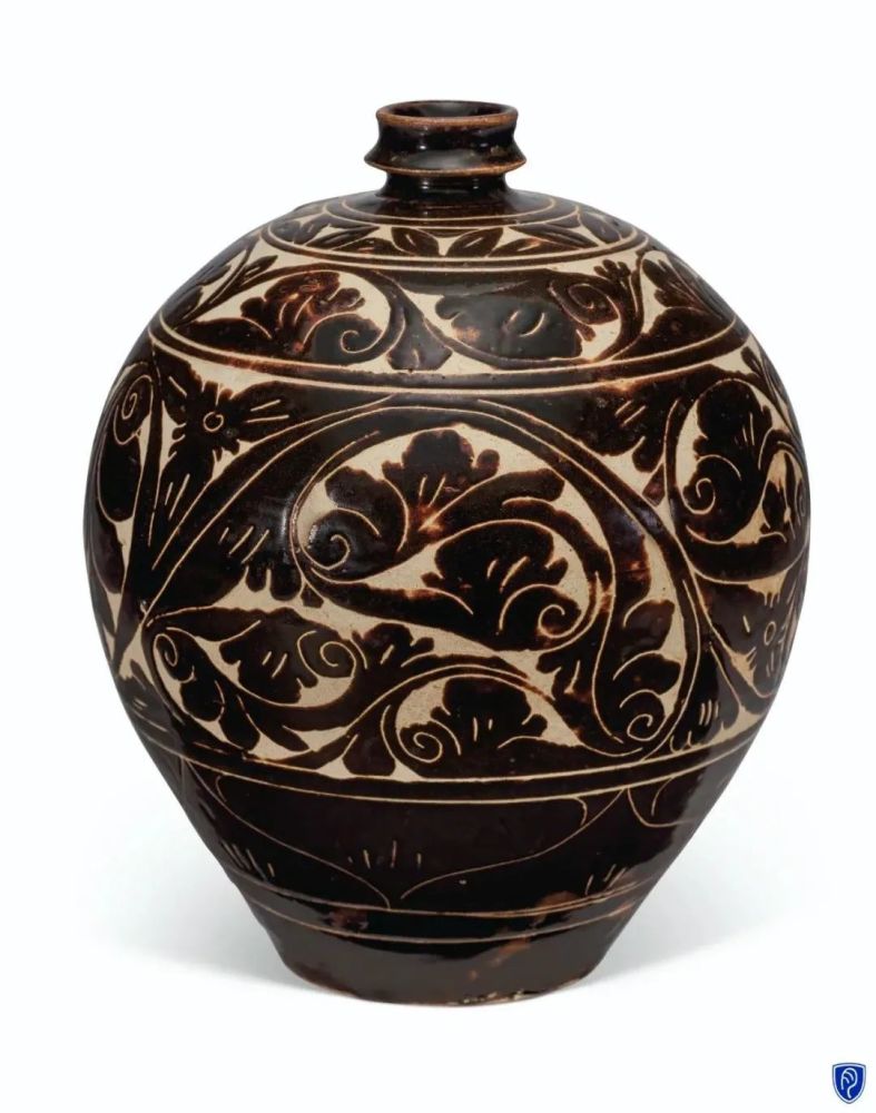 Lot708 金/元 磁州窑白地黑花小口瓶