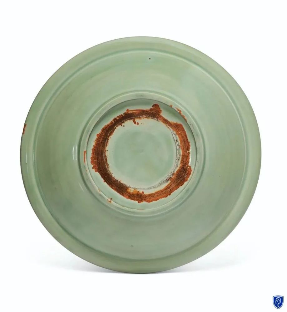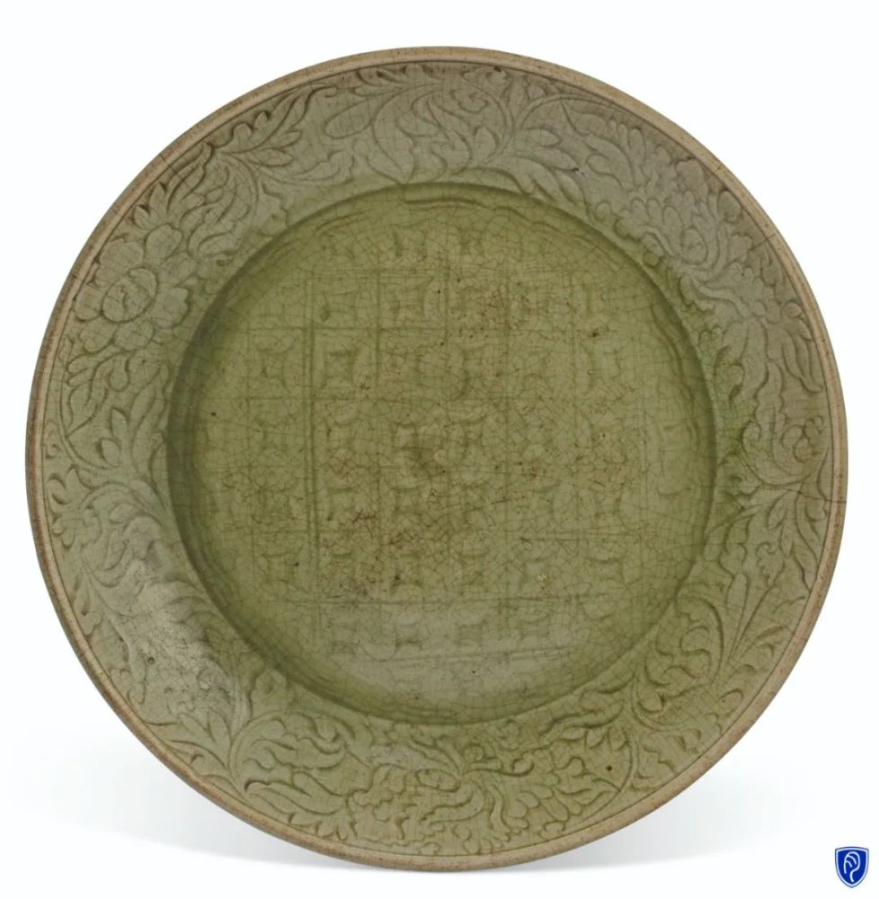Lot712 明 龙泉窑青釉牡丹纹折沿盘