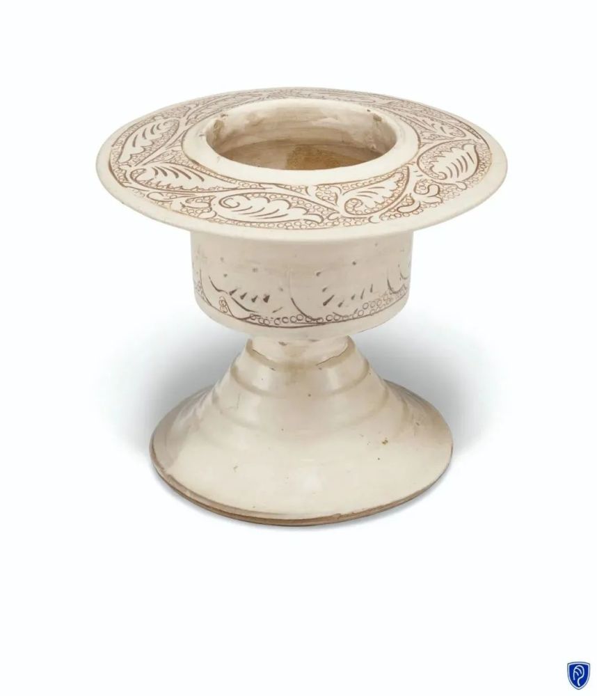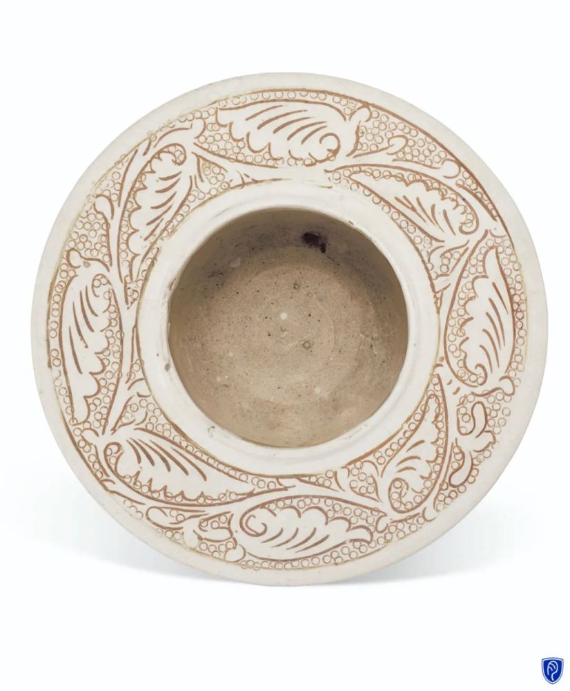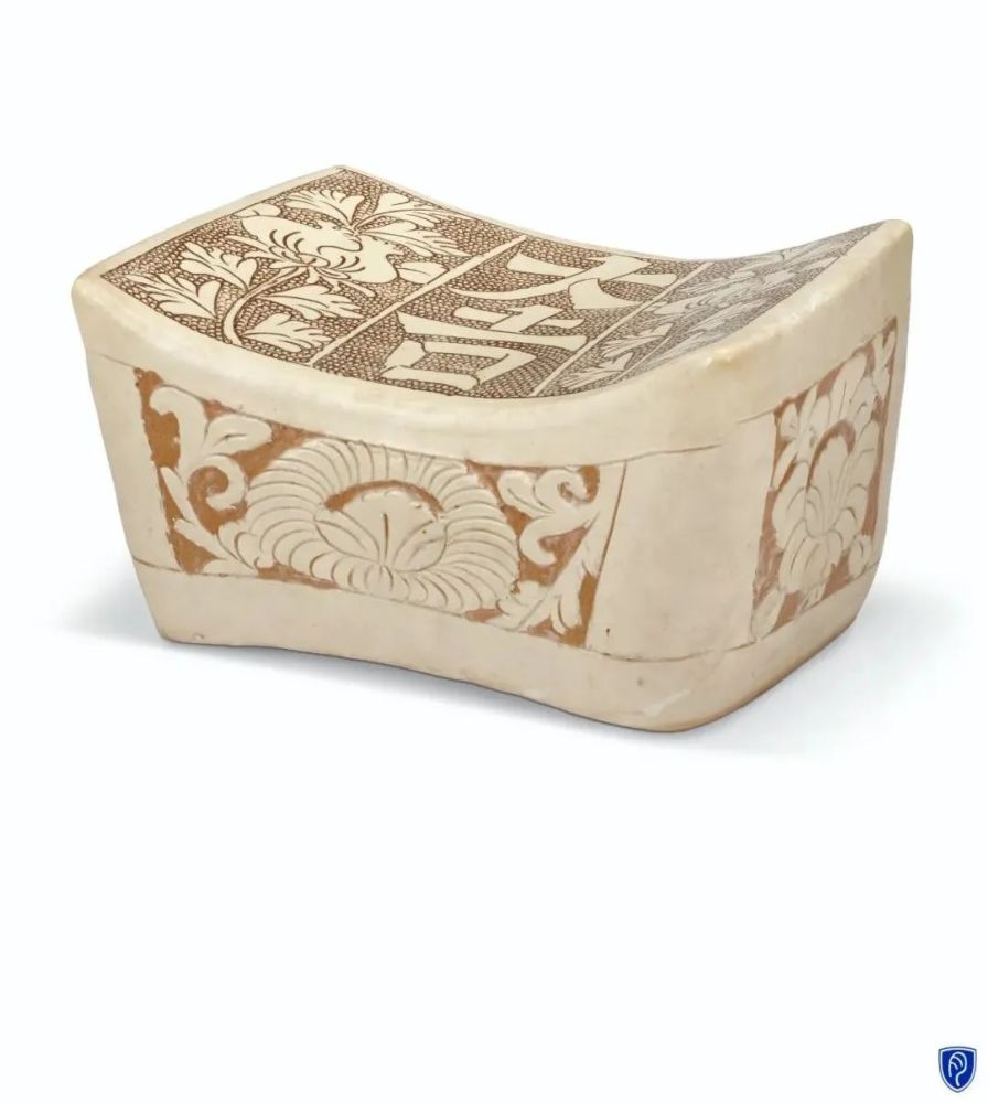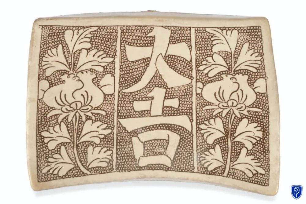Lot885 北宋 磁州白釉珍珠地划花「大吉」枕