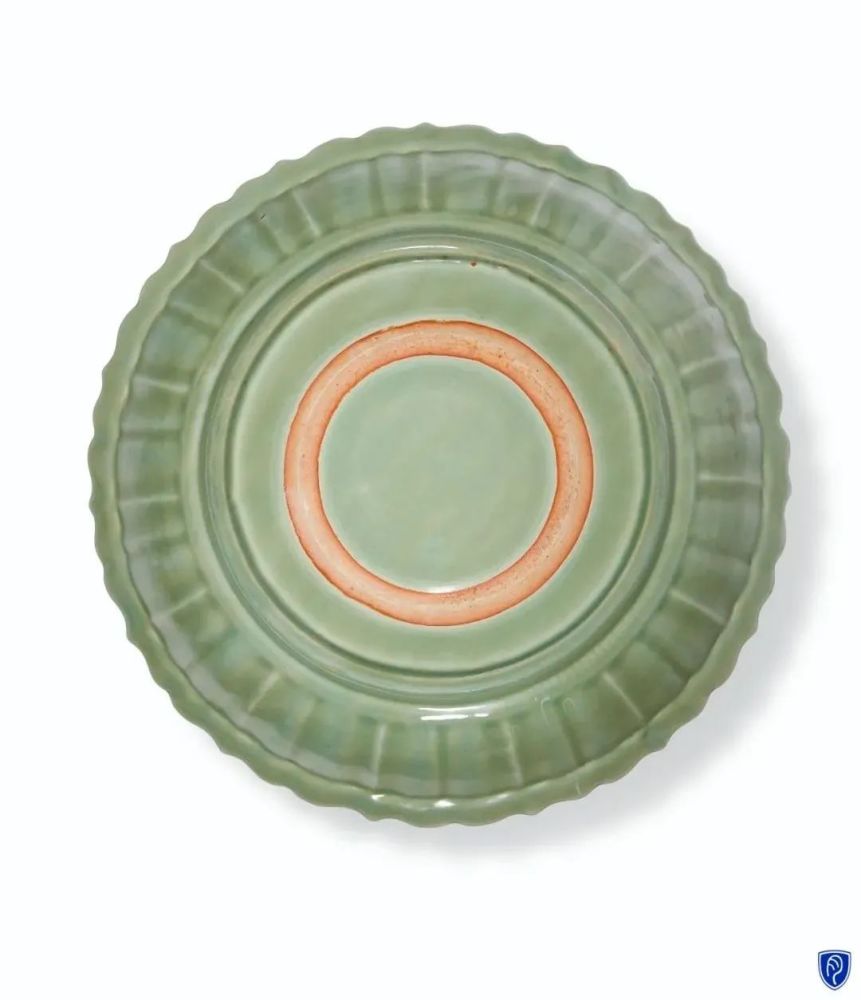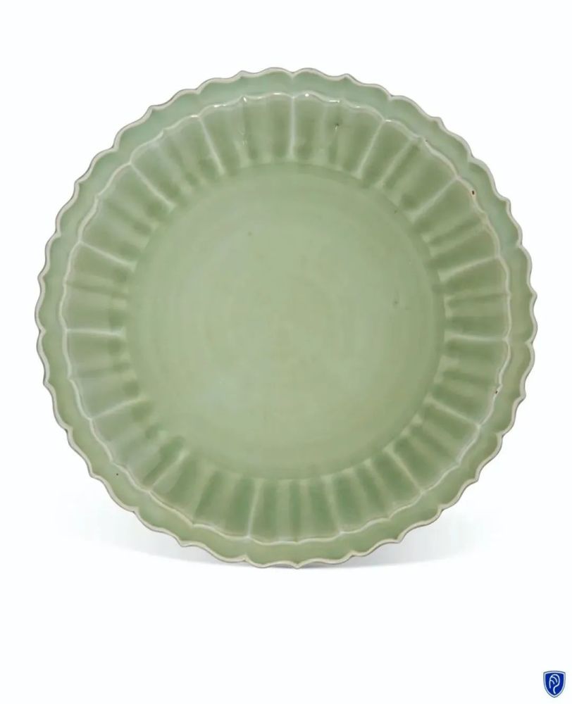 Lot893 明十四/十五世纪 龙泉窑青釉折沿花口盘