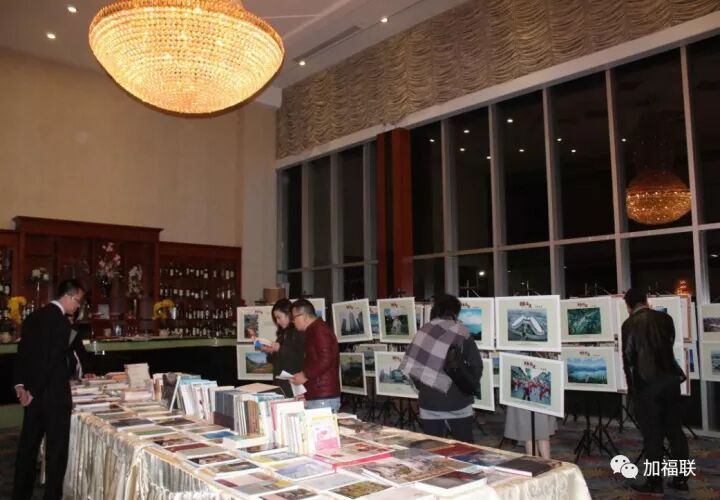 翰墨飘香,书画迎秋,晚宴现场,中国福建省对外文化交流协会,福建新闻出版广电局,海峡出版发行集团,福建新华发行集团,福建省出版对外贸易有限责任公司,福建人民出版社有限责任公司以及福建少年儿童出版社;会同福州文化艺术交流协会等部门联合举办福建图书以及书画作品现场展示会,那一册册精美隽永的图书,那一幅幅鲜活质朴的书画,吸引了大量的来宾前来参观。晚宴现场还举行了图书,书画以及茶叶等精品的义卖活动,并将所有义卖收入捐献给加拿大新移民基金会。
