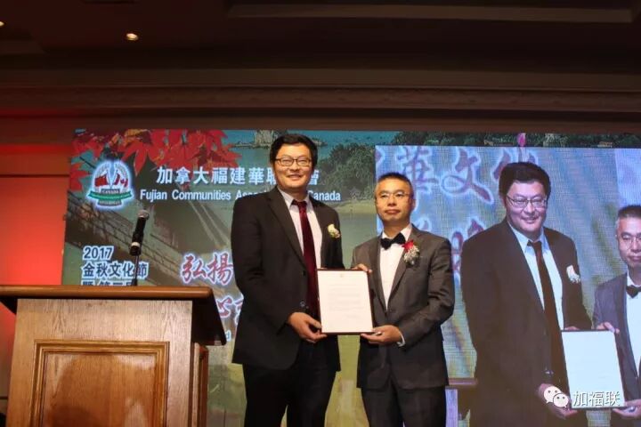 中华人民共和国驻多伦多总领馆侨务领事杨葆华,加拿大福建华联总会郑棋飞主席为第六届福建加拿大华联总会新增补的常务副主席张建城以及共同主席林秀松,高新伟颁发证书。