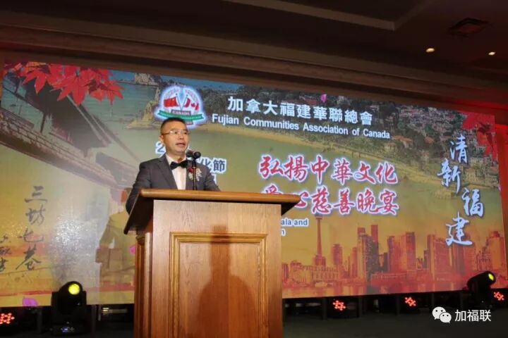 加拿大福建华联总会郑棋飞主席致欢迎辞,他首先对莅临本次晚宴的嘉宾们表示感谢,向嘉宾们介绍了加拿大福建华联总会成立至今,在团结广大旅加侨胞,向加拿大当地民众更好地展示中国福建传统文化魅力,展示福建经济发展成就,激发侨胞爱国爱乡,支持家乡建设热情,为弘扬中华优秀传统文化,构建加拿大和谐侨社,促进加中文化交流等所作出的积极工作与成果;并表示加拿大福建华联总会将不负众望,继续努力拼搏,积极进取,再创辉煌!